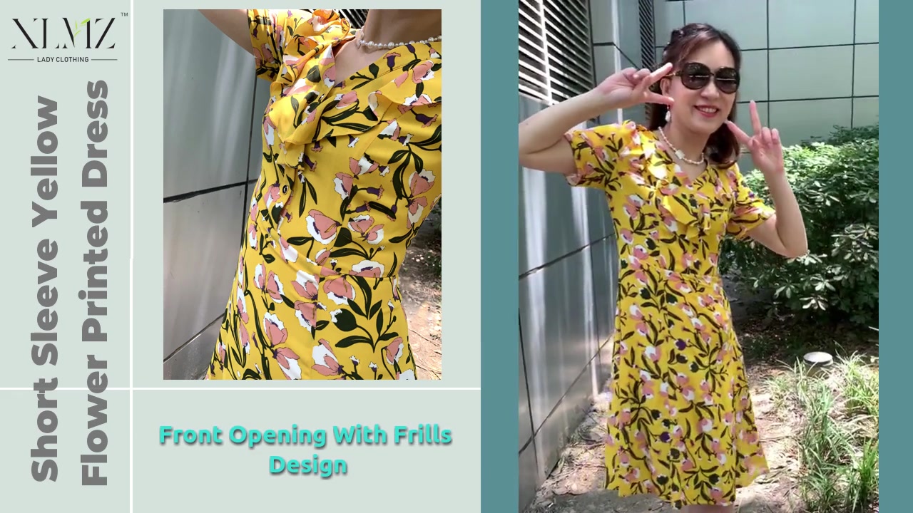 Flower printed dress/short printed dress simply Style in Good Fitting, Lantern Cuff Design Make Elegant